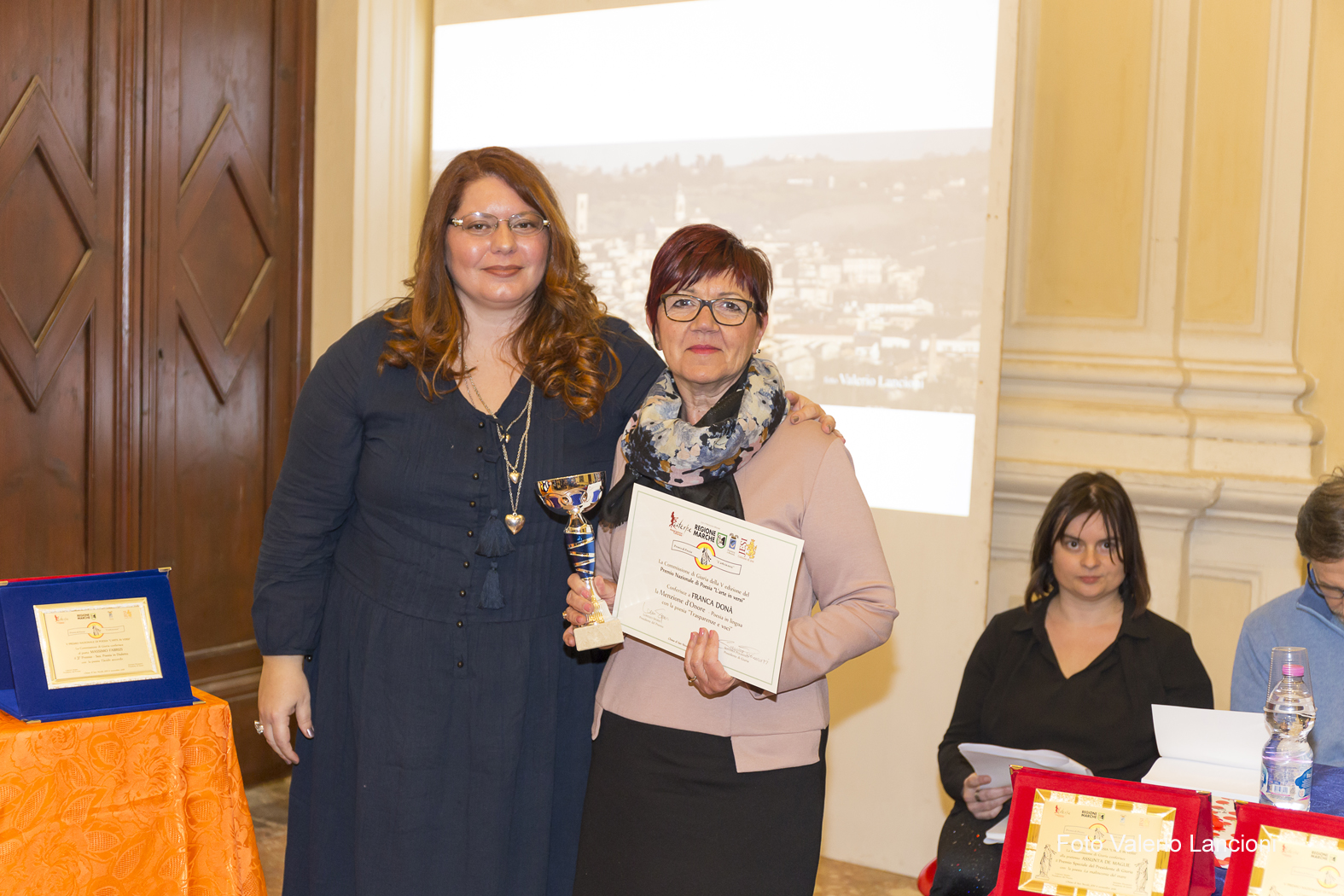 Daniela Ferraro di Locri (RC) vincitrice del Premio Speciale per la tematica sociale riceve il premio dai giurati Valentina Meloni e Giuseppe Guidolin.